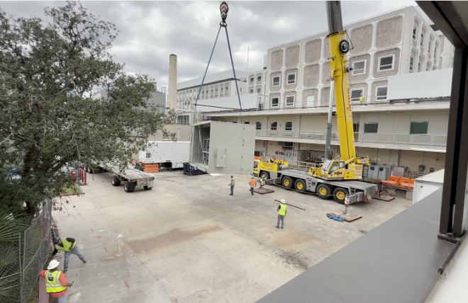 I am not sure how you guys pulled this off with two major hurricanes and typical long lead times, but the biggest critical path worry on the plate was the AHUs and Chiller...now ON-SITE. Please let all your subs and team know. You guys are some serious string pullers. Outstanding.